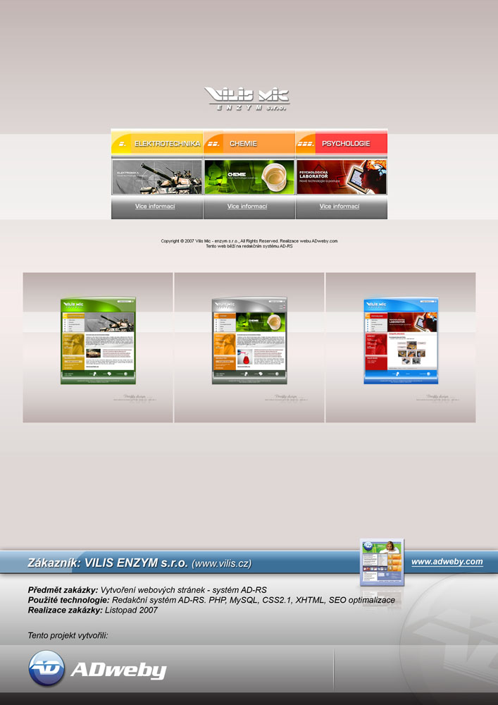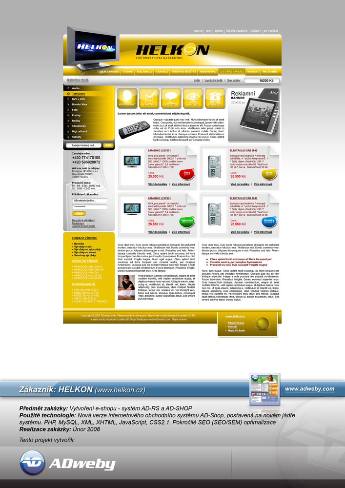 Použité technologie : Nová verze internetového obchodního systému AD-Shop, postavená na novém jádře systému. PHP, MySQL, XML, XHTML, JavaScript, CSS2.1. Pokročilé SEO (SEO/SEM) optimalizace...