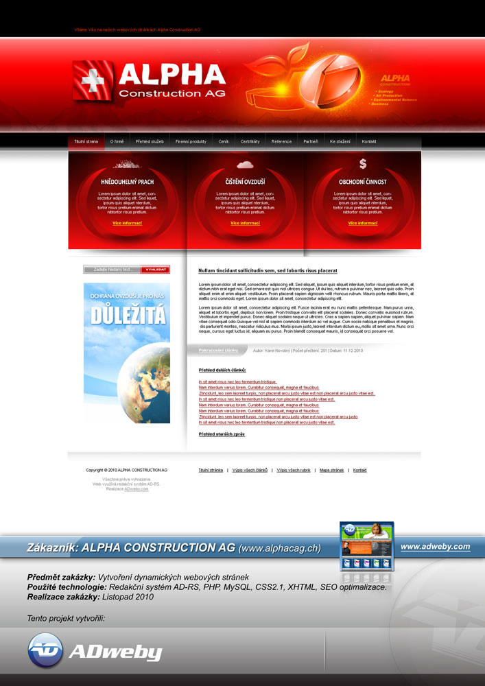 Použité technologie: Redakční systém AD-RS. PHP, MySQL, CSS2.1, XHTML, SEO optimalizace...