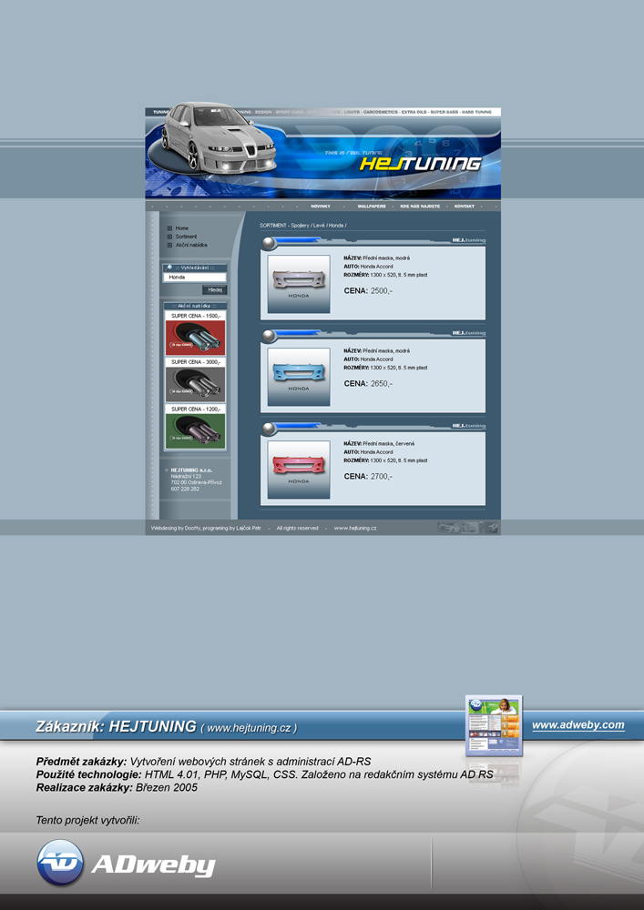 Použité technologie: Založeno na redakčním systému AD-RS v.0.8. PHP, HTML 4.01, CSS, JavaScript