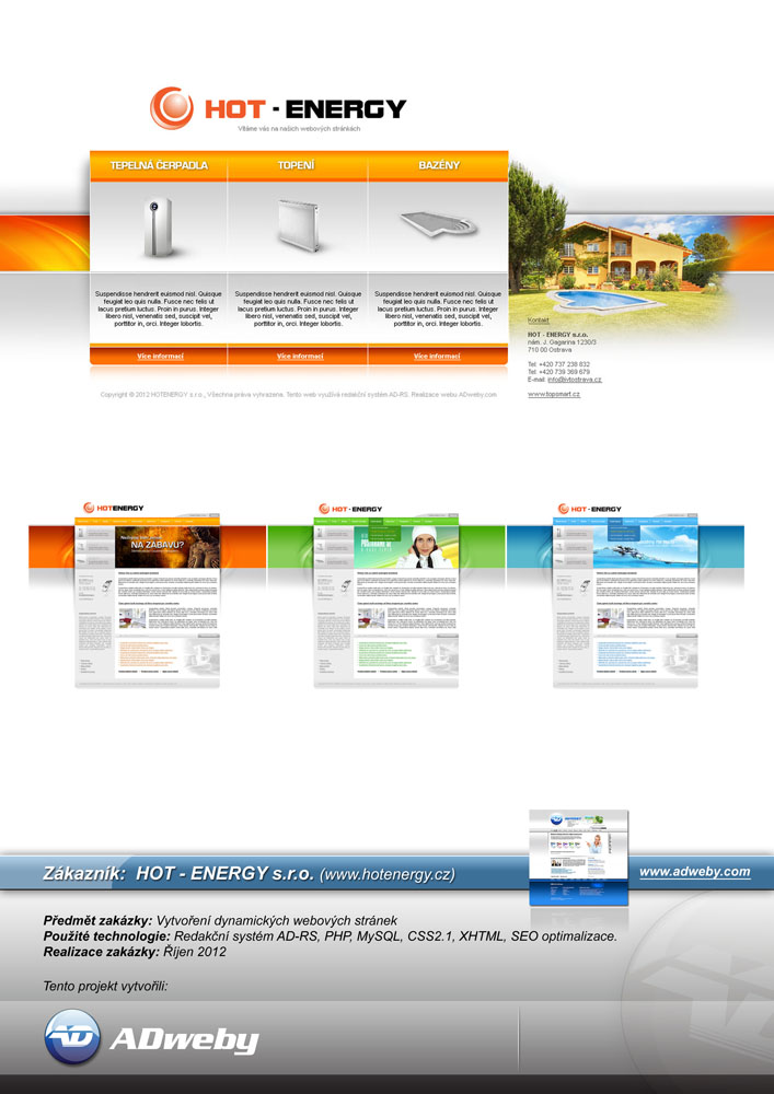 Použité technologie: Redakční systém AD-RS. PHP, MySQL, CSS2.1, XHTML, SEO optimalizace...