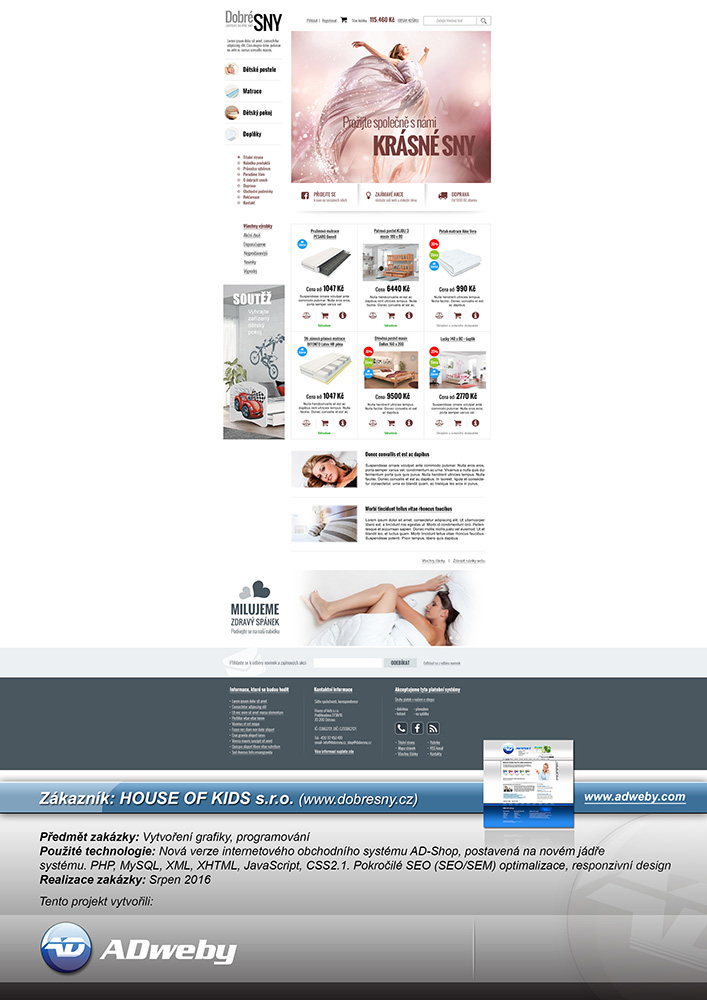 Použité technologie: Systém AD-Shop pro elektronické obchodování. PHP, MySQL, XML, XHTML, JavaScript, CSS2.1. Pokročilé SEO (SEO/SEM) optimalizace, responzivní design...