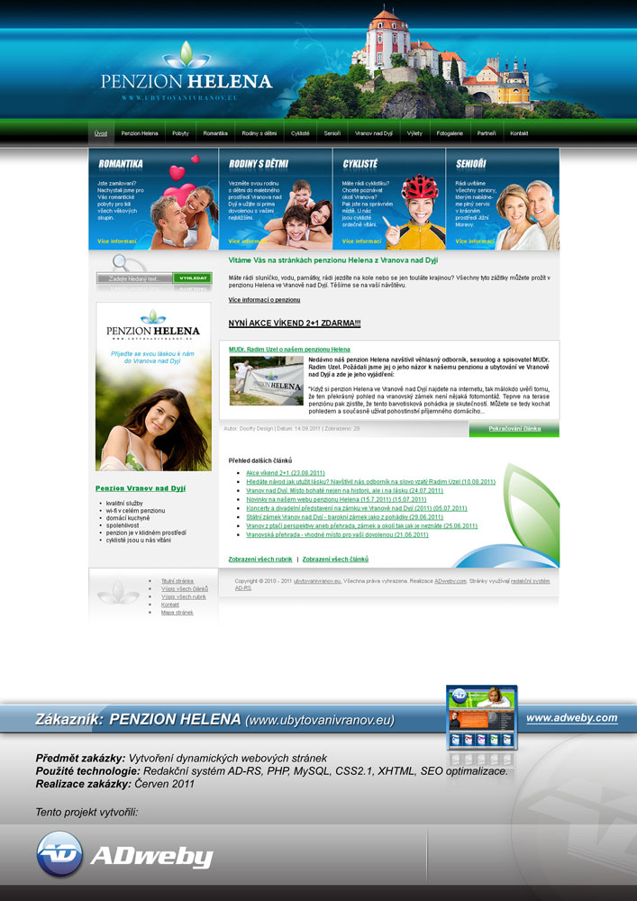 Použité technologie: Redakční systém AD-RS. PHP, MySQL, CSS2.1, XHTML, SEO optimalizace...