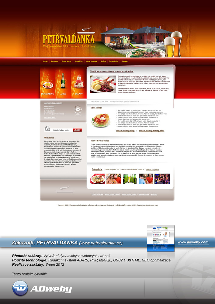Použité technologie: Redakční systém AD-RS. PHP, MySQL, CSS2.1, XHTML, SEO optimalizace...
